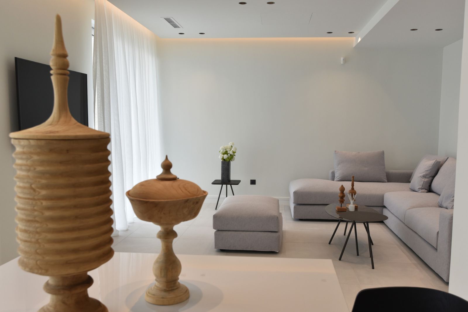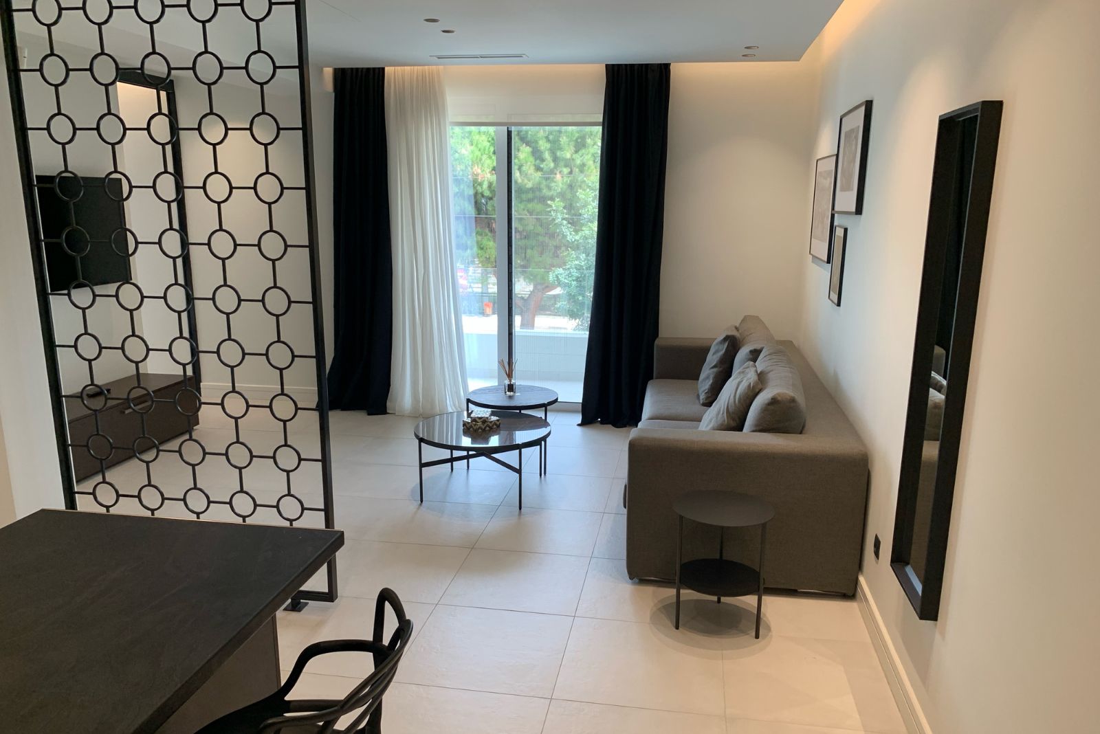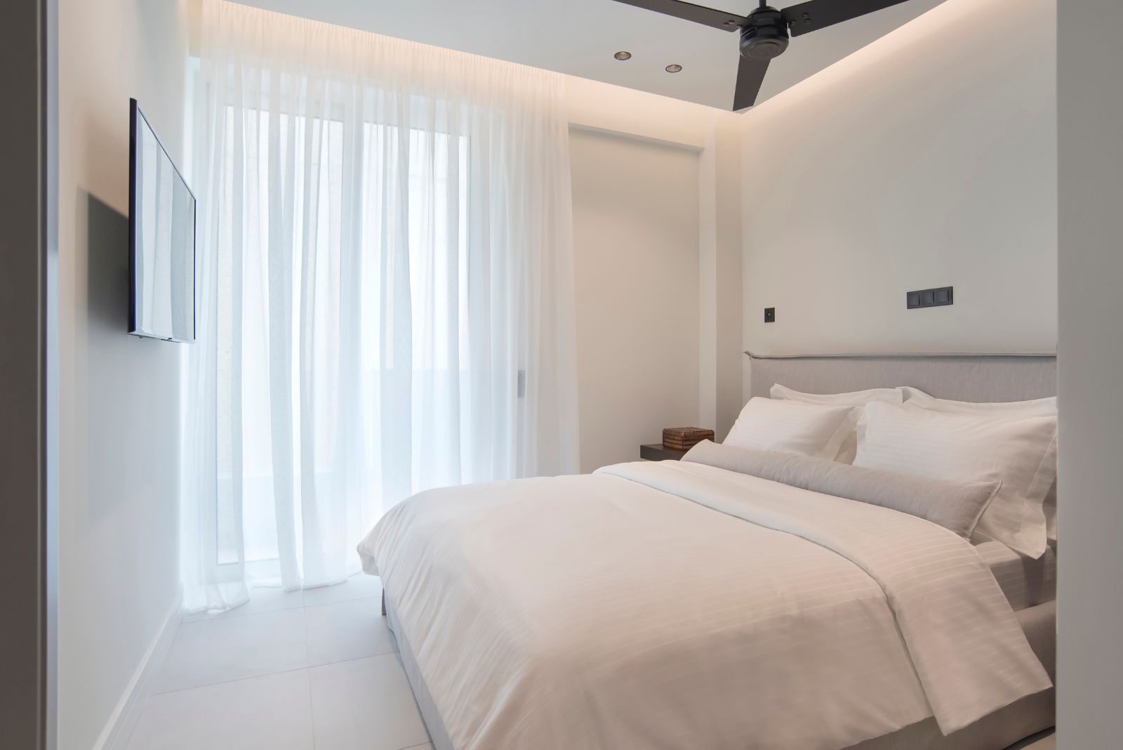 The Deluxe Apartment category at South42 features five elegant and generously sized apartments, located on the 1st and 2nd floors of the property. Ranging between 55 to 70 m², they are defined by their seamless open-plan layouts, stylish furnishings, and sun-drenched verandas overlooking Glyfada and the garden. Ideal for couples or solo travelers who appreciate space, quietude, and understated sophistication.