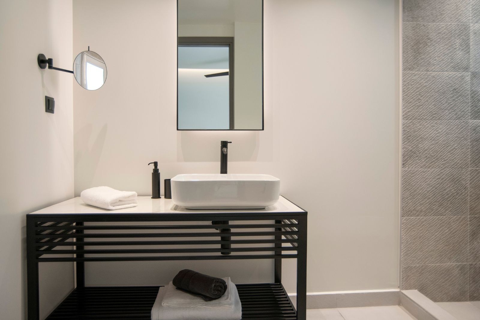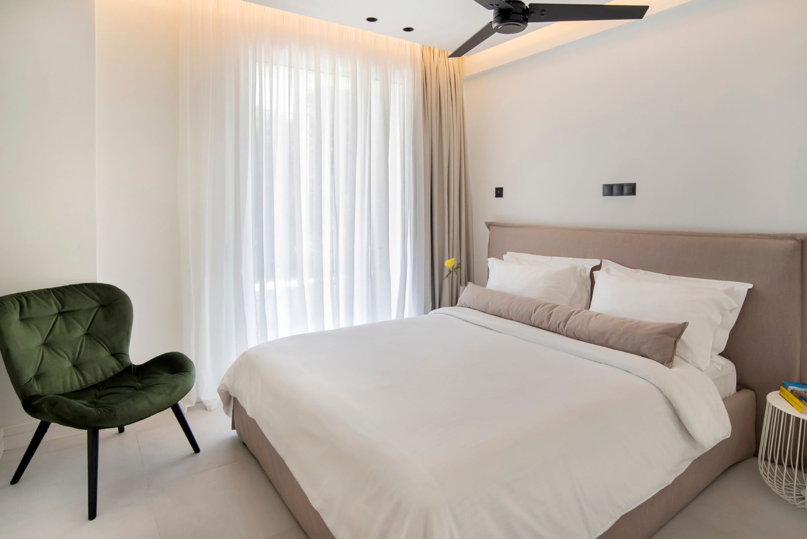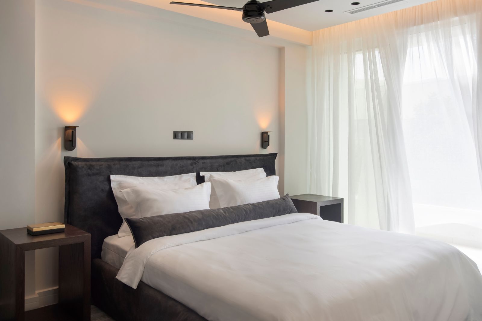 The Deluxe Apartment category at South42 features five elegant and generously sized apartments, located on the 1st and 2nd floors of the property. Ranging between 55 to 70 m², they are defined by their seamless open-plan layouts, stylish furnishings, and sun-drenched verandas overlooking Glyfada and the garden. Ideal for couples or solo travelers who appreciate space, quietude, and understated sophistication.