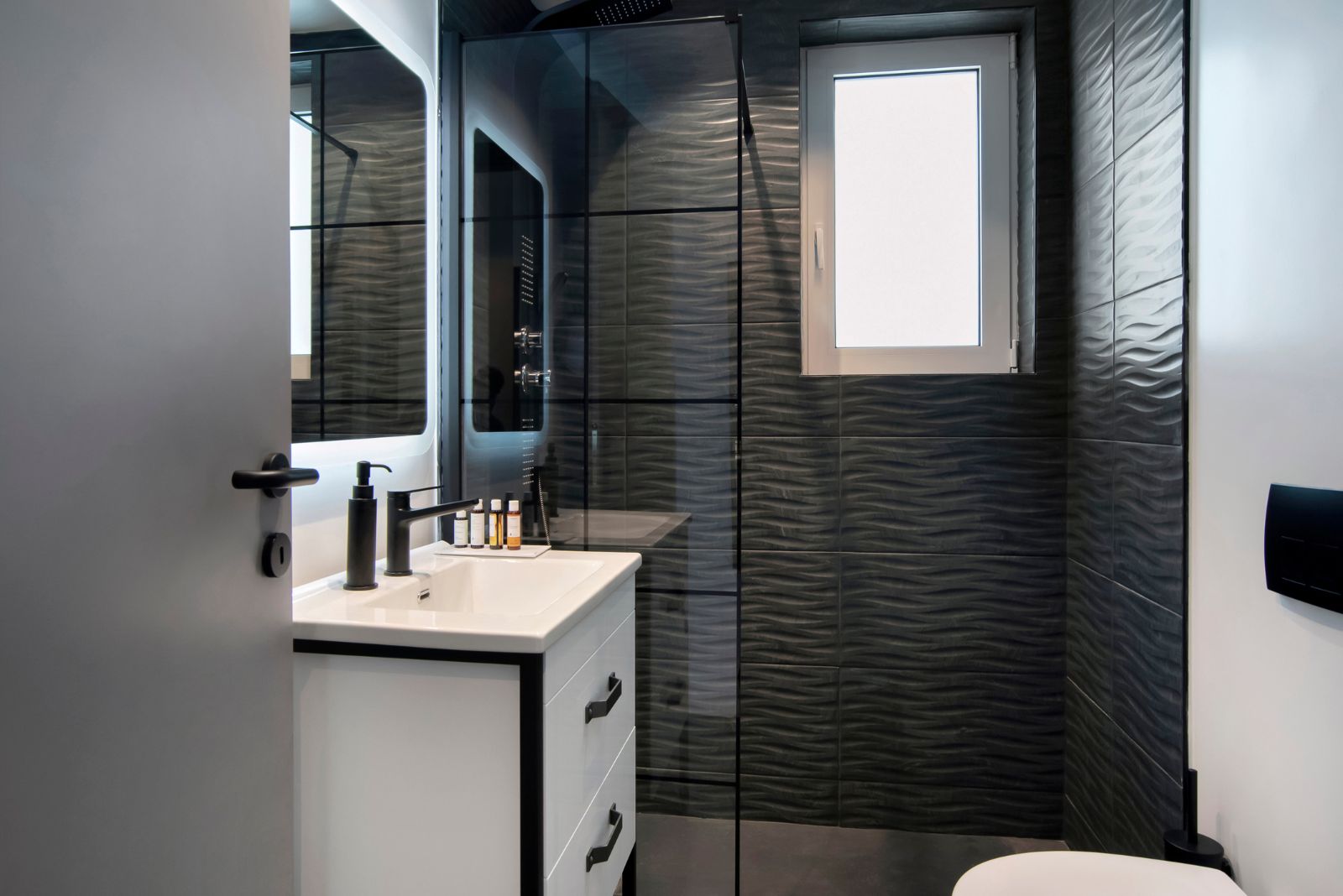 A romantic hideaway for two, Beta 19 offers a soft aesthetic and open-plan design, ideal for couples seeking a peaceful and stylish stay in the heart of Glyfada. The apartment’s spaces blend seamlessly, with a cappuccino-toned kitchen featuring ceramic hobs, microwave, small fridge, Nespresso & French coffee makers, and a complete set of dining utensils.
