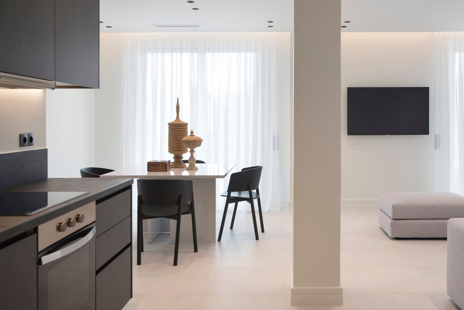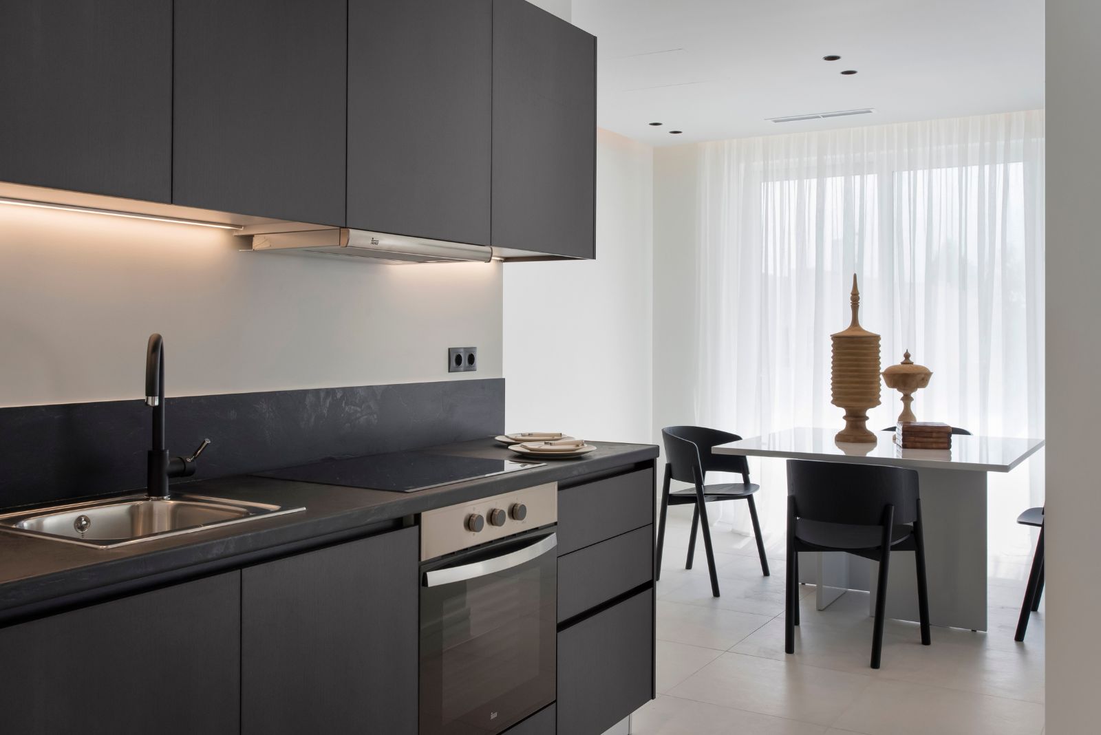 A spacious, serene retreat for two, Beta 17 redefines comfort through scale and soft elegance. Located on the second floor, this ice-grey hued apartment offers expansive interiors and a calming view of the private garden. All areas of the apartment open onto a sunlit private balcony overlooking the garden, where an outdoor seating area offers a peaceful spot to unwind or dine al fresco.