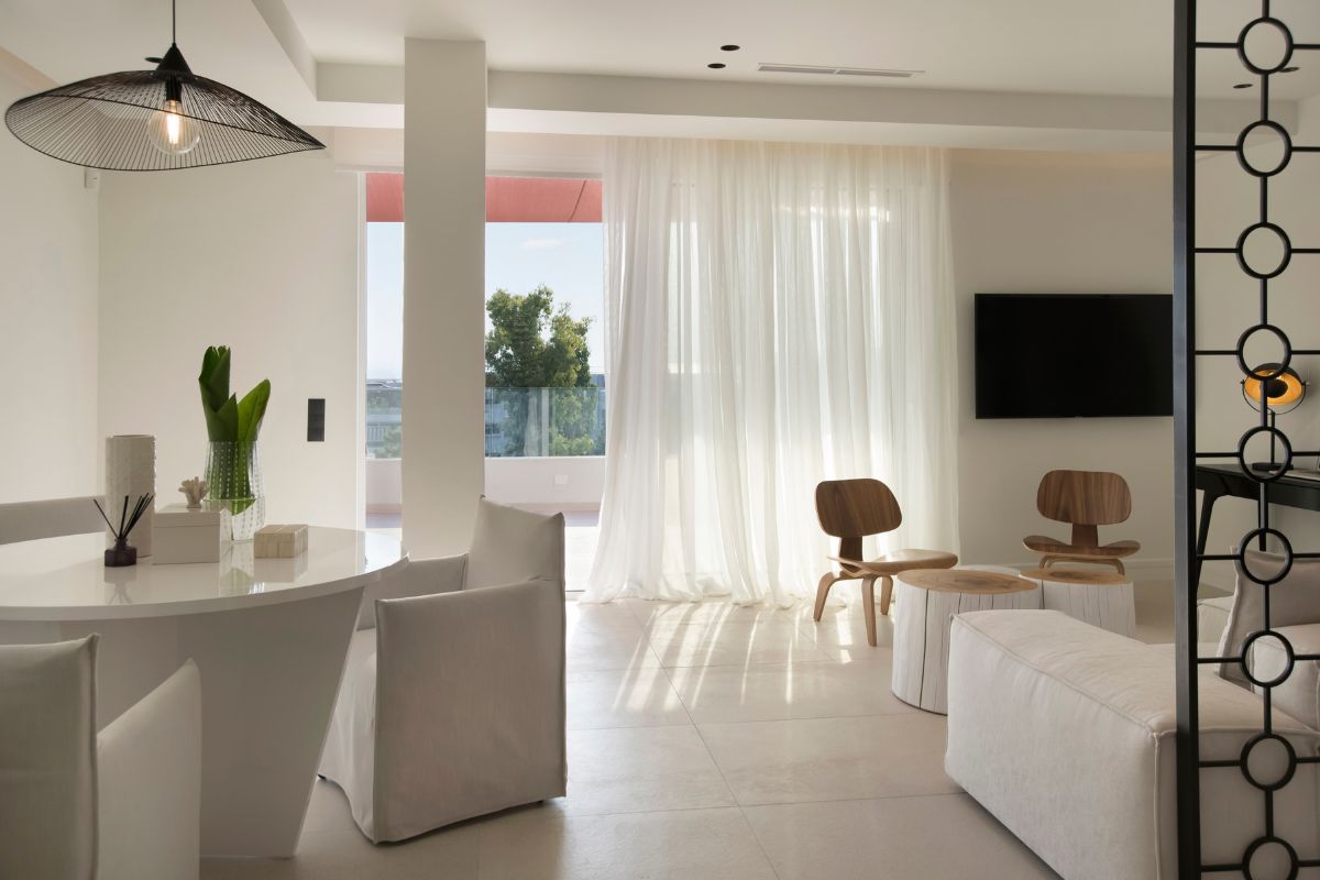Delta 23 is the only Penthouse Apartment at South42 — and it truly elevates the entire stay experience. Spanning 75 m² of stylish interior and 100 m² of private terrace, it embodies the pinnacle of minimal luxury in Glyfada. Designed with natural influences and soft earthy tones reminiscent of the Greek islands, it offers guests both understated elegance and breathtaking outdoor indulgence.